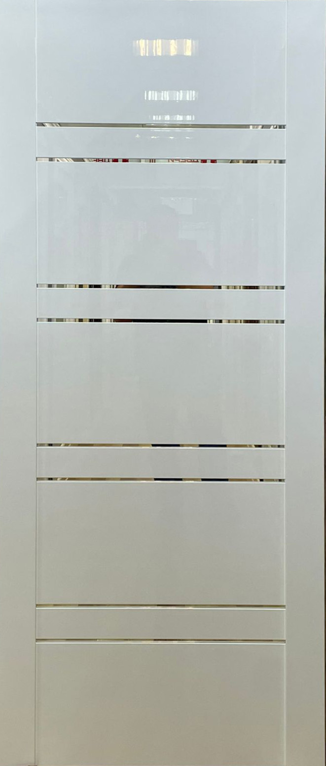 Межкомнатная дверь «ЮНИЛАЙН / БЕЛЫЙ ГЛЯНЕЦ (СТЕКЛО ГРЕЙ) ДГ» от компании Modern в Павловской