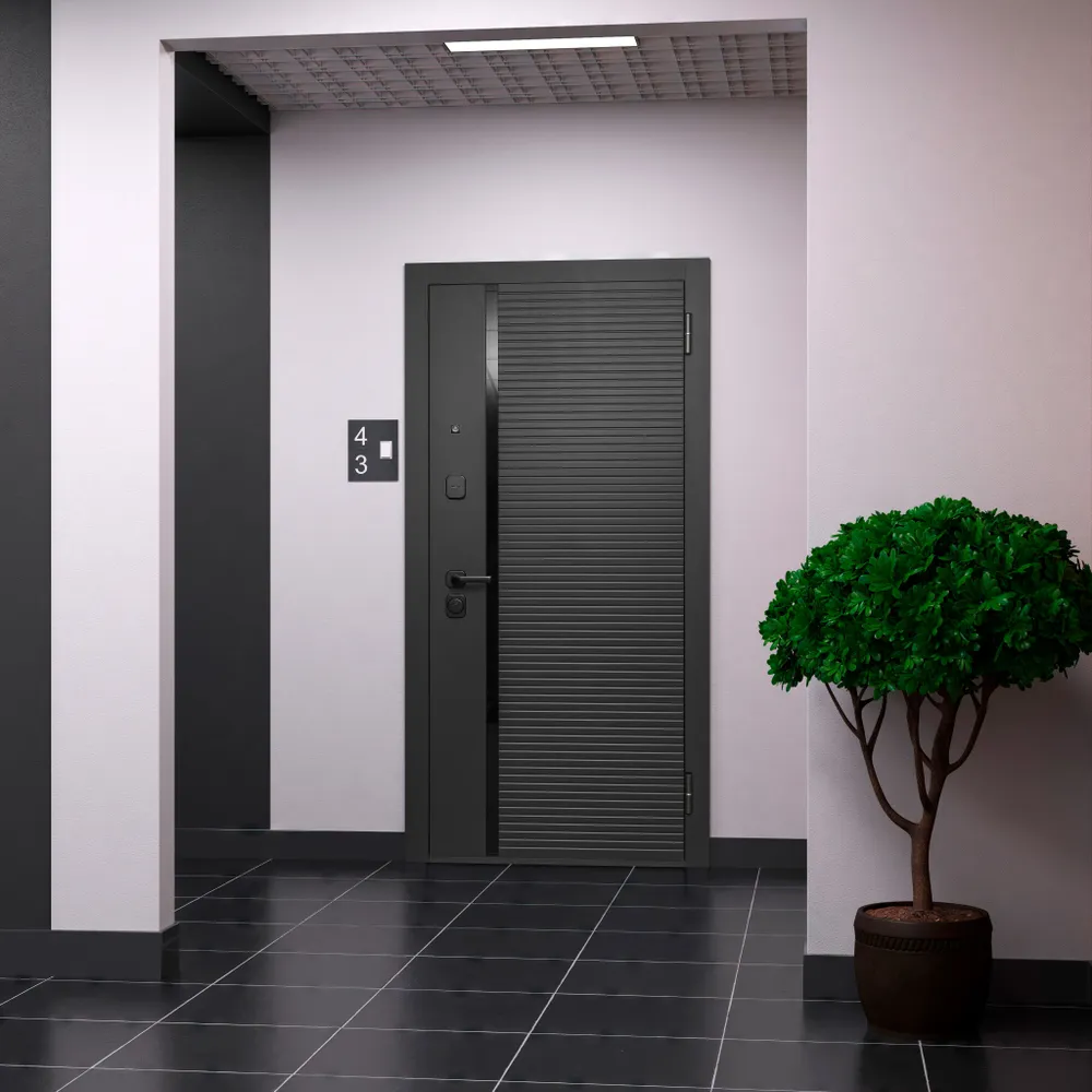 Входная дверь «ЧЁРНОЕ ЗЕРКАЛО 9 СМ ЭМАЛИТ ЧЕРНЫЙ » от компании Modern в Павловской